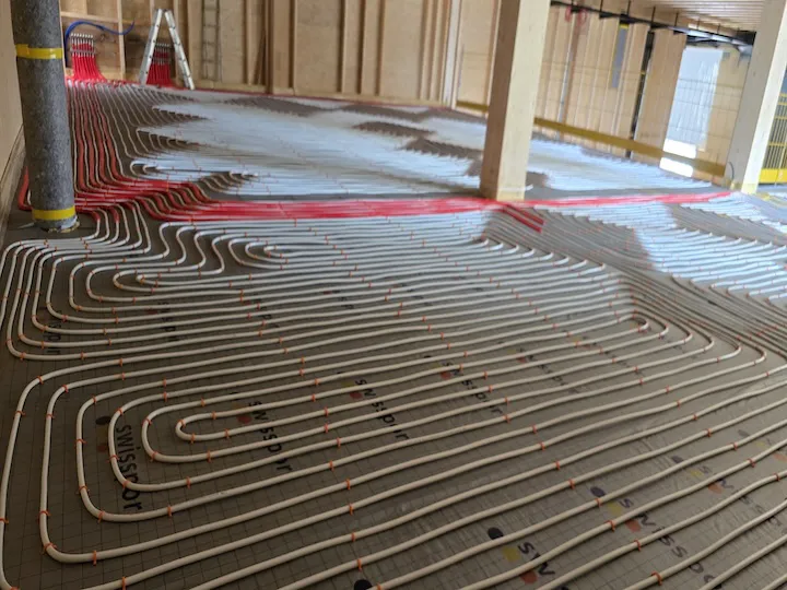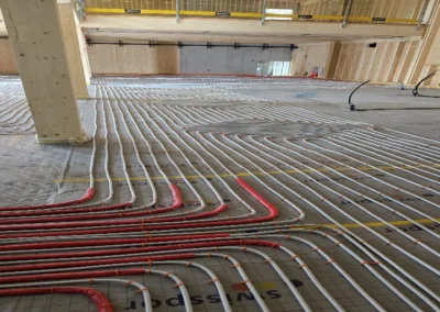 ▸ Distribution de chaleur par chauffage au sol, radiateurs, aérothermes ou encore par panneaux rayonnants